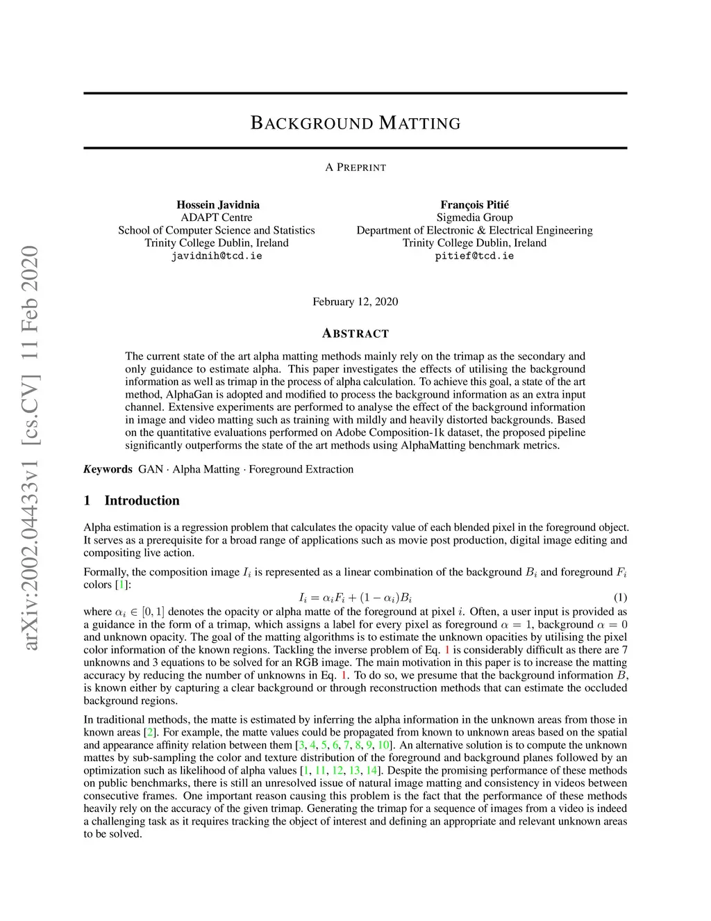 The current state of the art alpha matting methods mainly rely on the trimap as the secondary and only guidance to estimate alpha. This paper investigates the effects of utilising the background information as well as trimap in the process of alpha calculation. To achieve this goal, a state of the art method, AlphaGan is adopted and modified to process the background information as an extra input channel. Extensive experiments are performed to analyse the effect of the background information in image and video matting such as training with mildly and heavily distorted backgrounds. Based on the quantitative evaluations performed on Adobe Composition-1k dataset, the proposed pipeline significantly outperforms the state of the art methods using AlphaMatting benchmark metrics.
