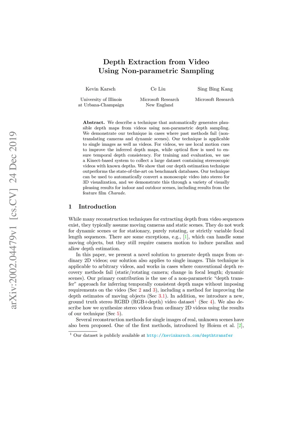 Depth Extraction from Video Using Non-parametric Sampling