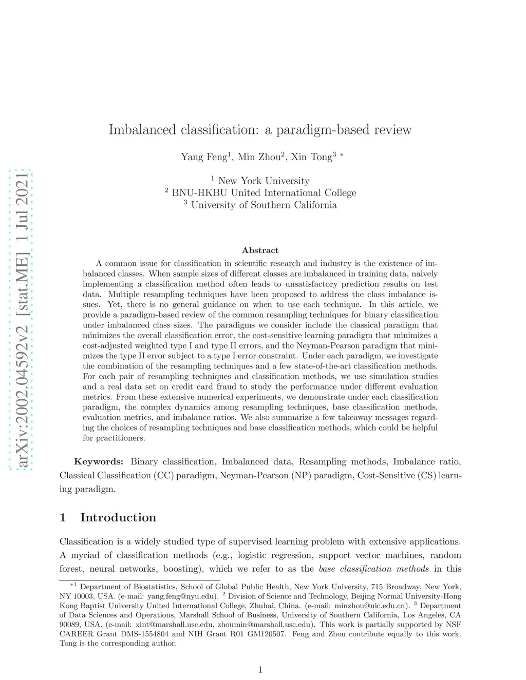 A common issue for classification in scientific research and industry is the existence of imbalanced classes. When sample sizes of different classes are imbalanced in training data, naively implementing a classification method often leads to unsatisfactory prediction results on test data. Multiple resampling techniques have been proposed to address the class imbalance issues. Yet, there is no general guidance on when to use each technique. In this article, we provide a paradigm-based review of the common resampling techniques for binary classification under imbalanced class sizes. The paradigms we consider include the classical paradigm that minimizes the overall classification error, the cost-sensitive learning paradigm that minimizes a cost-adjusted weighted type I and type II errors, and the Neyman-Pearson paradigm that minimizes the type II error subject to a type I error constraint. Under each paradigm, we investigate the combination of the resampling techniques and a few state-of-the-art classification methods. For each pair of resampling techniques and classification methods, we use simulation studies and a real data set on credit card fraud to study the performance under different evaluation metrics. From these extensive numerical experiments, we demonstrate under each classification paradigm, the complex dynamics among resampling techniques, base classification methods, evaluation metrics, and imbalance ratios. We also summarize a few takeaway messages regarding the choices of resampling techniques and base classification methods, which could be helpful for practitioners.