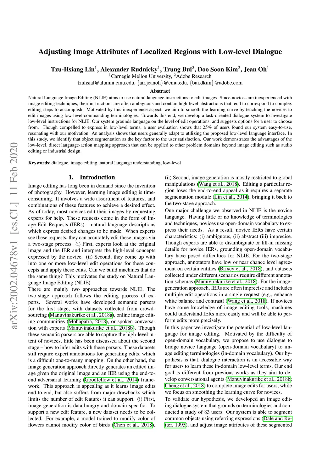 Adjusting Image Attributes of Localized Regions with Low-level Dialogue