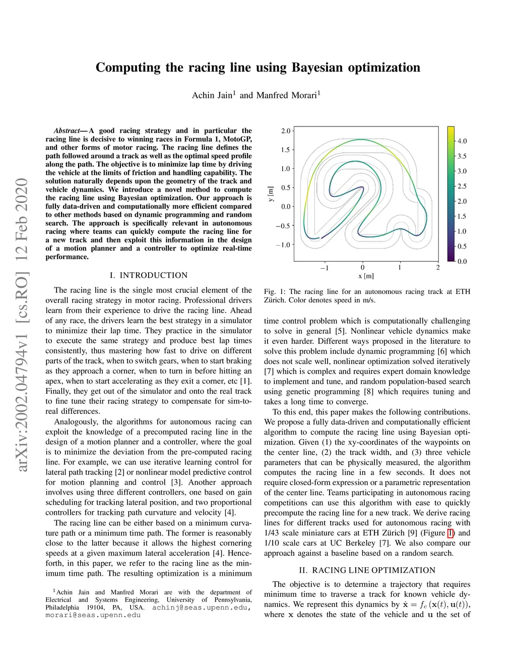 Computing the racing line using Bayesian optimization