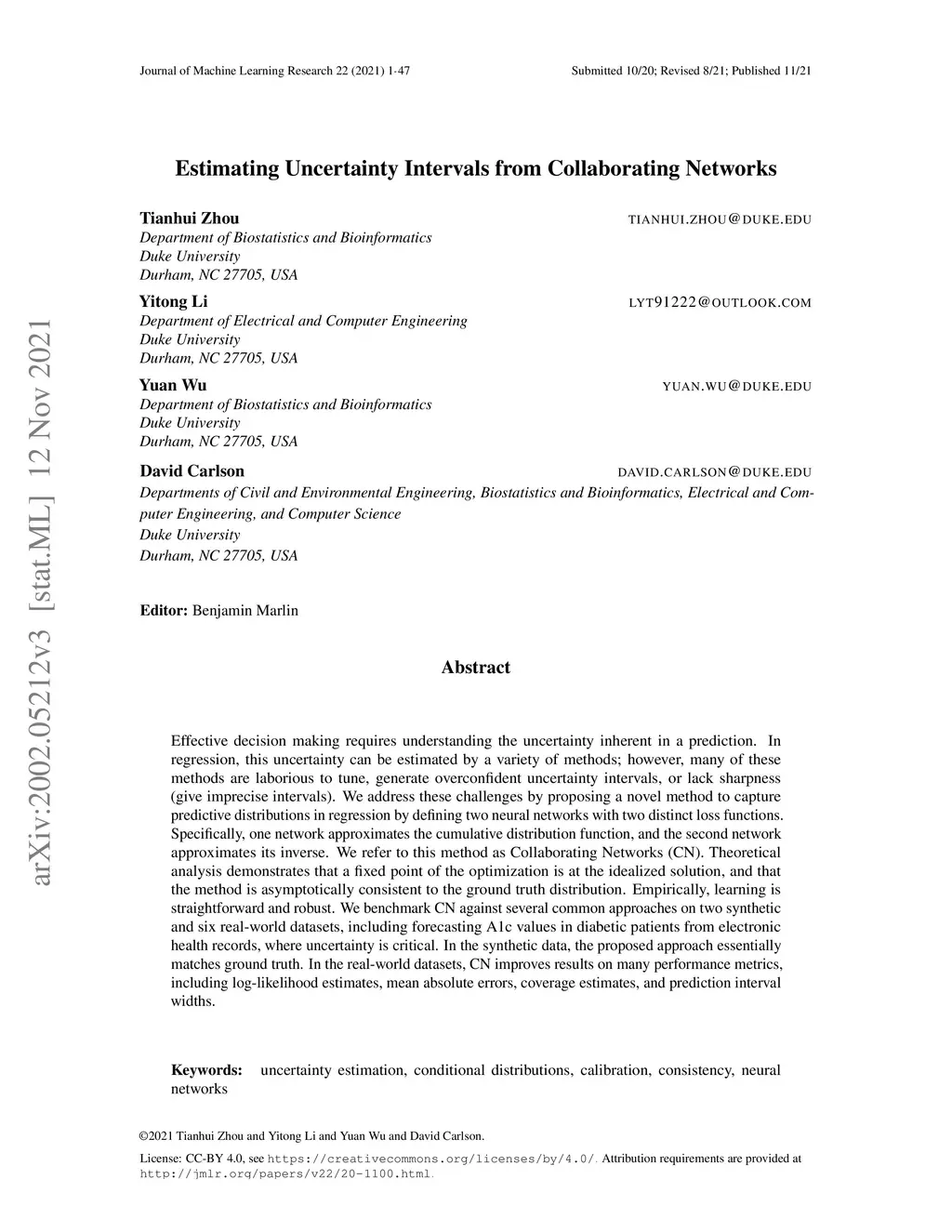 Estimating Uncertainty Intervals from Collaborating Networks