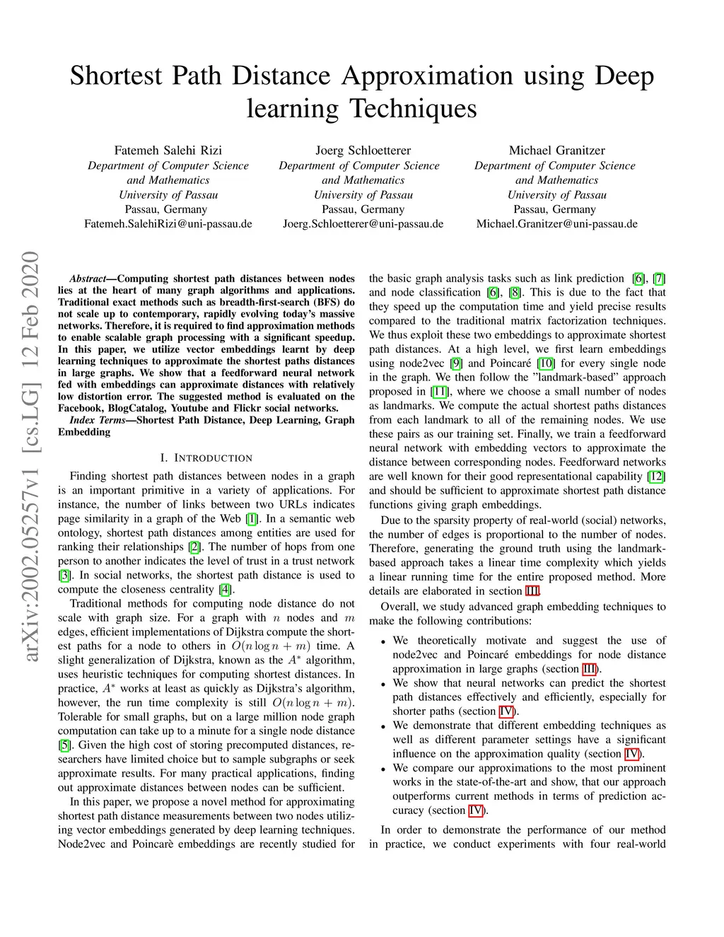Shortest path distance approximation using deep learning techniques