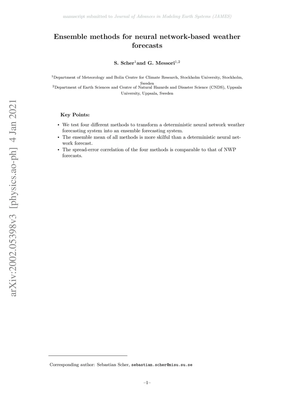 Ensemble weather forecasts enable a measure of uncertainty to be attached to each forecast, by computing the ensemble's spread. However, generating an ensemble with a good spread-error relationship is far from trivial, and a wide range of approaches to achieve this have been explored -- chiefly in the context of numerical weather prediction models. Here, we aim to transform a deterministic neural network weather forecasting system into an ensemble forecasting system. We test four methods to generate the ensemble: random initial perturbations, retraining of the neural network, use of random dropout in the network, and the creation of initial perturbations with singular vector decomposition. The latter method is widely used in numerical weather prediction models, but is yet to be tested on neural networks. The ensemble mean forecasts obtained from these four approaches all beat the unperturbed neural network forecasts, with the retraining method yielding the highest improvement. However, the skill of the neural network forecasts is systematically lower than that of state-of-the-art numerical weather prediction models.