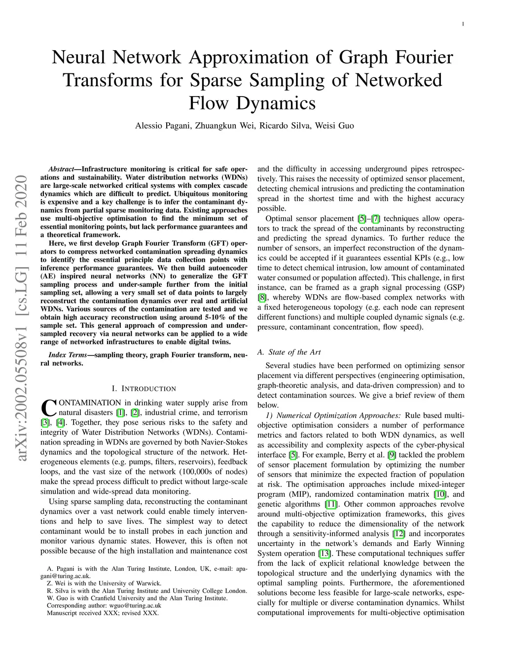 Infrastructure monitoring is critical for safe operations and sustainability. Water distribution networks (WDNs) are large-scale networked critical systems with complex cascade dynamics which are difficult to predict. Ubiquitous monitoring is expensive and a key challenge is to infer the contaminant dynamics from partial sparse monitoring data. Existing approaches use multi-objective optimisation to find the minimum set of essential monitoring points, but lack performance guarantees and a theoretical framework. Here, we first develop Graph Fourier Transform (GFT) operators to compress networked contamination spreading dynamics to identify the essential principle data collection points with inference performance guarantees. We then build autoencoder (AE) inspired neural networks (NN) to generalize the GFT sampling process and under-sample further from the initial sampling set, allowing a very small set of data points to largely reconstruct the contamination dynamics over real and artificial WDNs. Various sources of the contamination are tested and we obtain high accuracy reconstruction using around 5-10% of the sample set. This general approach of compression and under-sampled recovery via neural networks can be applied to a wide range of networked infrastructures to enable digital twins.
