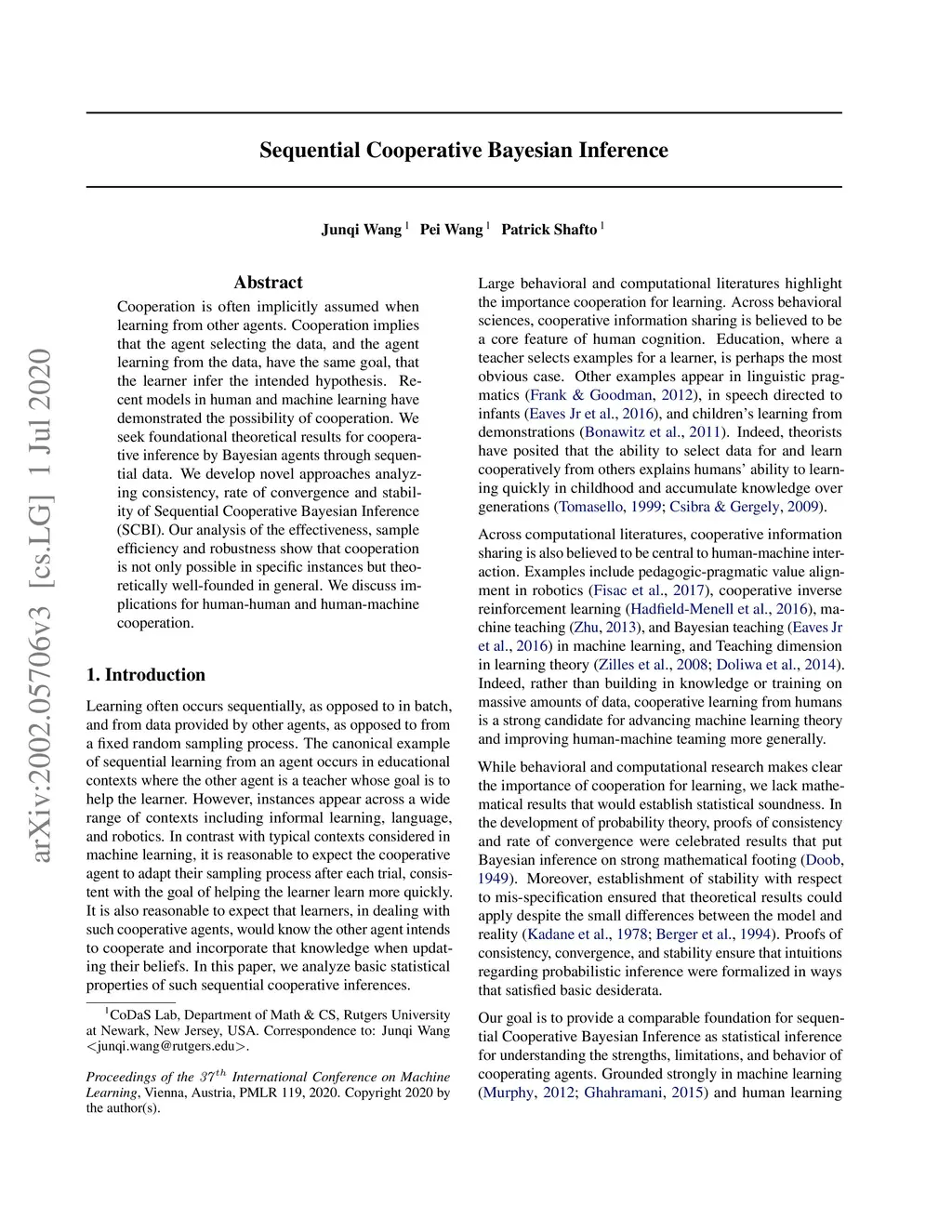 Sequential Cooperative Bayesian Inference