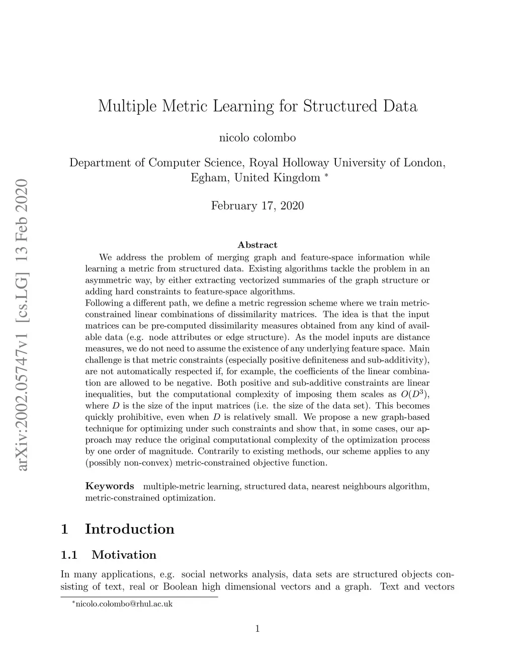 Multiple Metric Learning for Structured Data