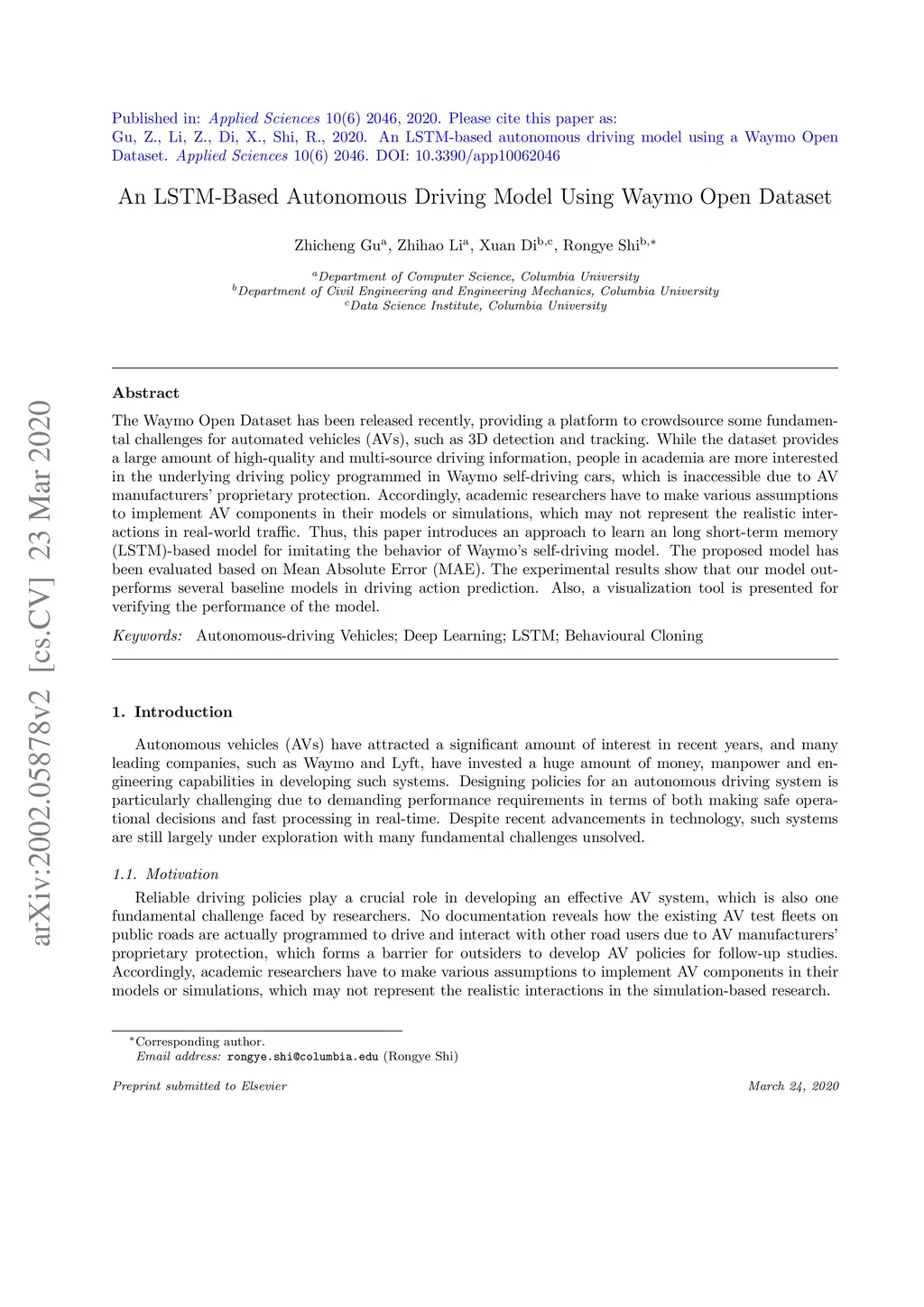 An LSTM-Based Autonomous Driving Model Using Waymo Open Dataset