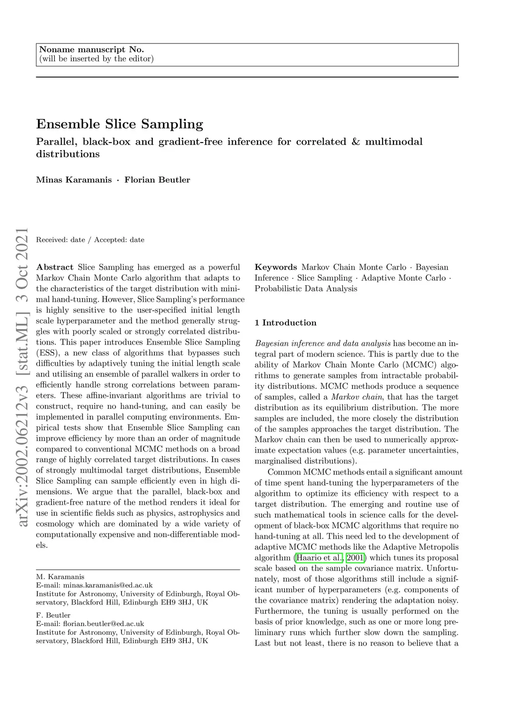 Ensemble Slice Sampling: Parallel, black-box and gradient-free inference