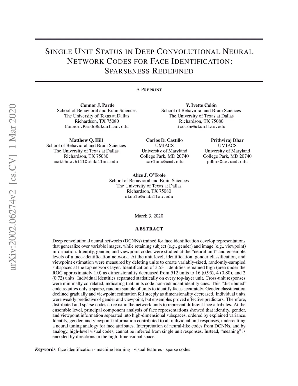 Single Unit Status in Deep Convolutional Neural Network Codes for Face