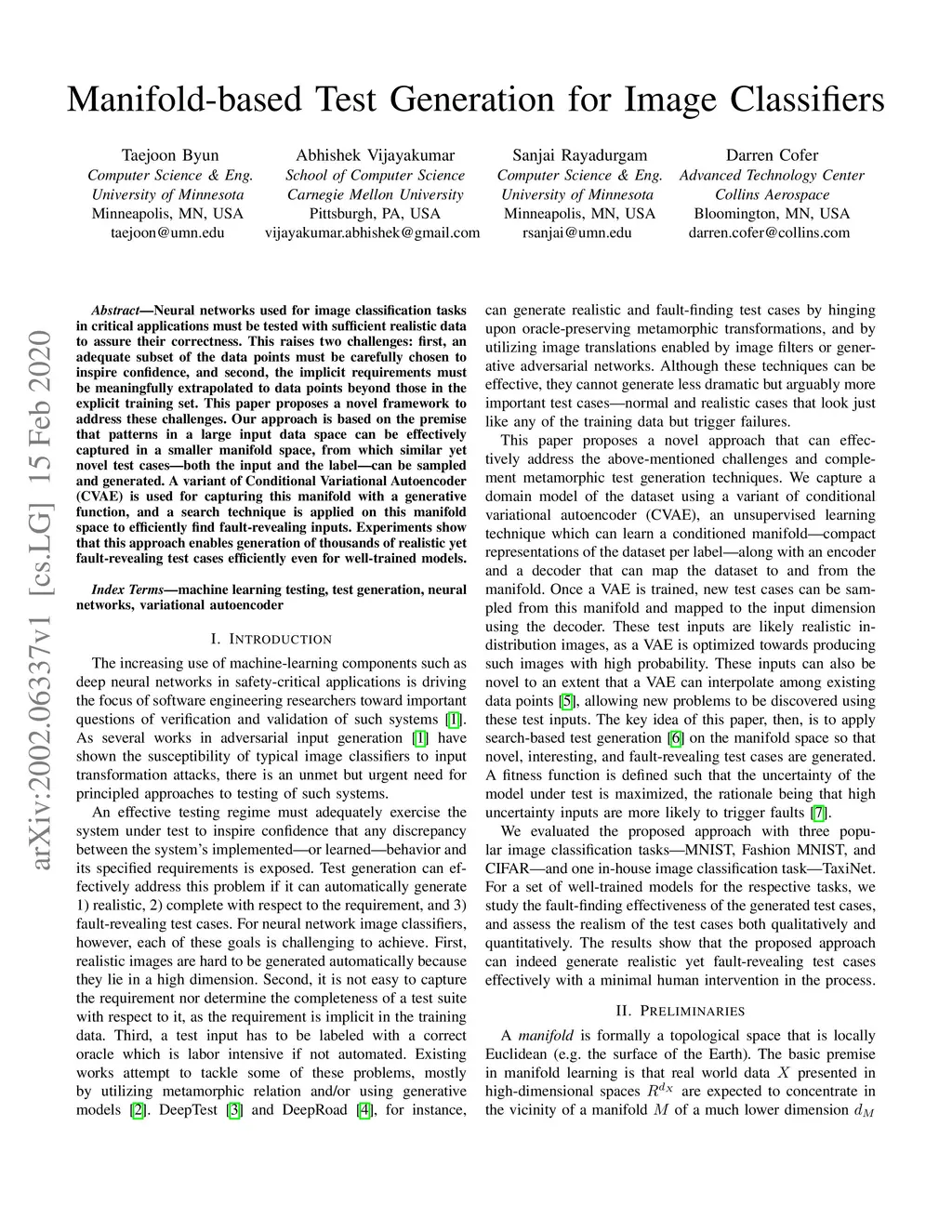 Manifold-based Test Generation for Image Classifiers