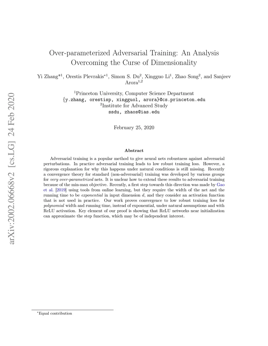 Over-parameterized Adversarial Training: An Analysis Overcoming the