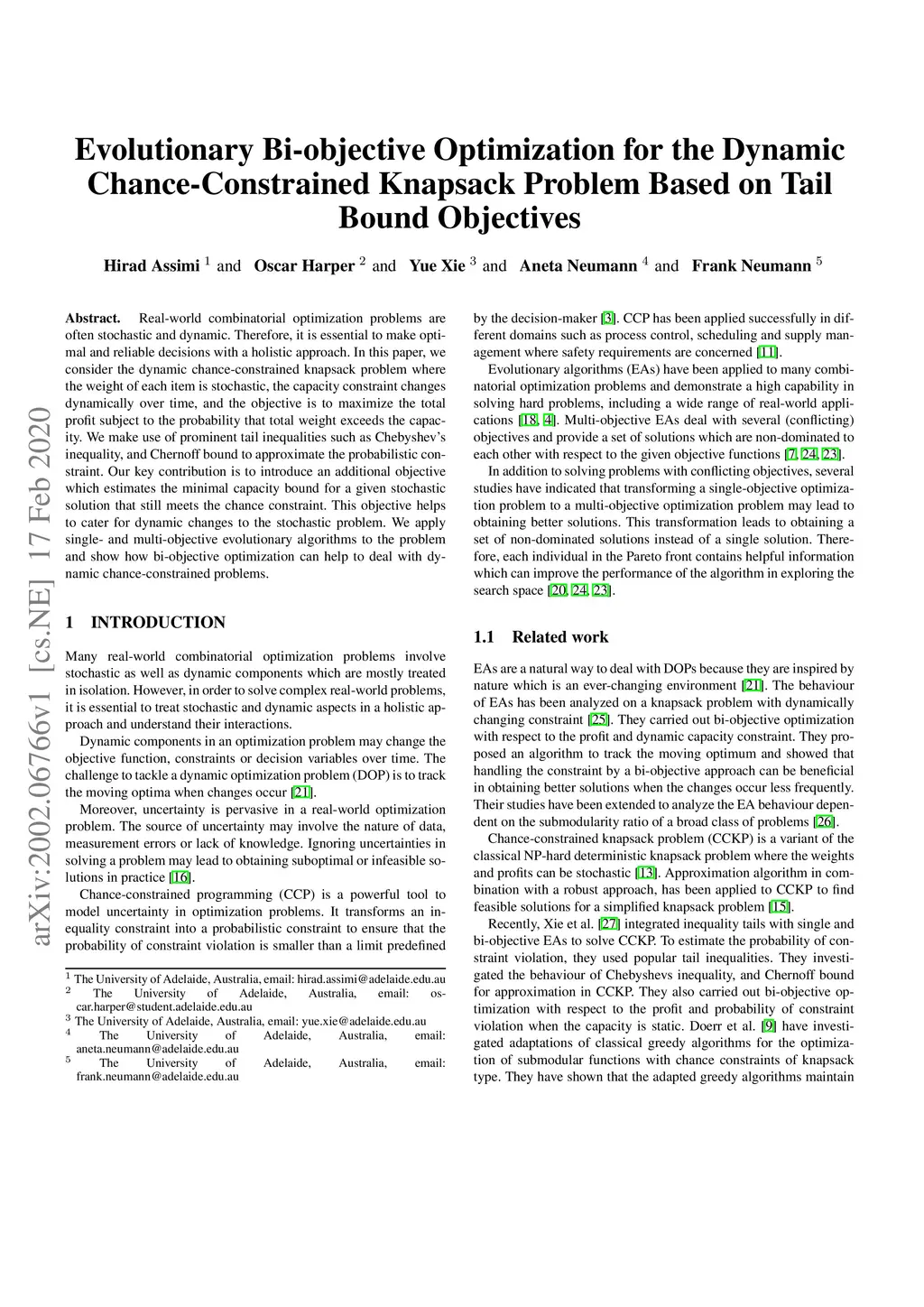 Real-world combinatorial optimization problems are often stochastic and dynamic. Therefore, it is essential to make optimal and reliable decisions with a holistic approach. In this paper, we consider the dynamic chance-constrained knapsack problem where the weight of each item is stochastic, the capacity constraint changes dynamically over time, and the objective is to maximize the total profit subject to the probability that total weight exceeds the capacity. We make use of prominent tail inequalities such as Chebyshev's inequality, and Chernoff bound to approximate the probabilistic constraint. Our key contribution is to introduce an additional objective which estimates the minimal capacity bound for a given stochastic solution that still meets the chance constraint. This objective helps to cater for dynamic changes to the stochastic problem. We apply single- and multi-objective evolutionary algorithms to the problem and show how bi-objective optimization can help to deal with dynamic chance-constrained problems.