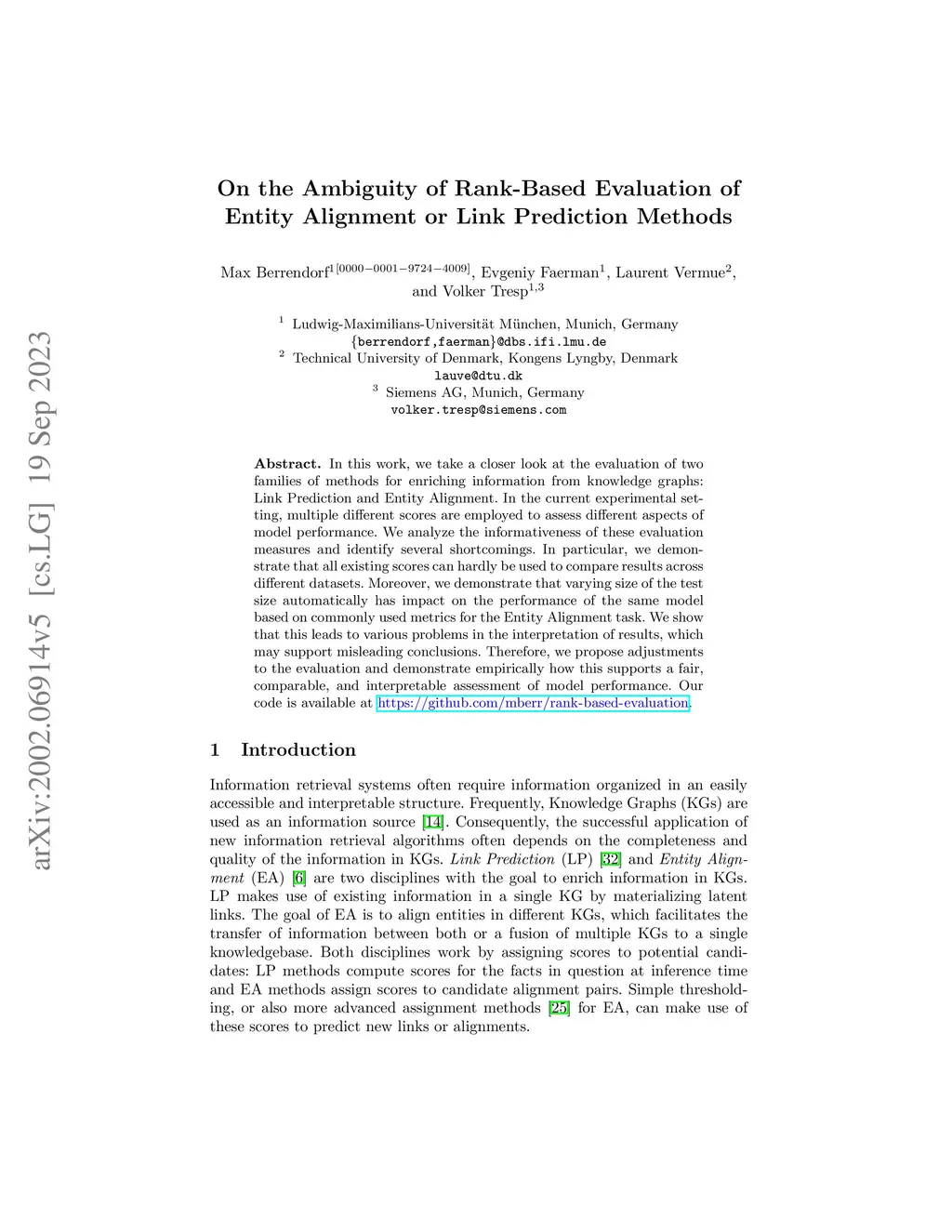 On the Ambiguity of Rank-Based Evaluation of Entity Alignment or Link