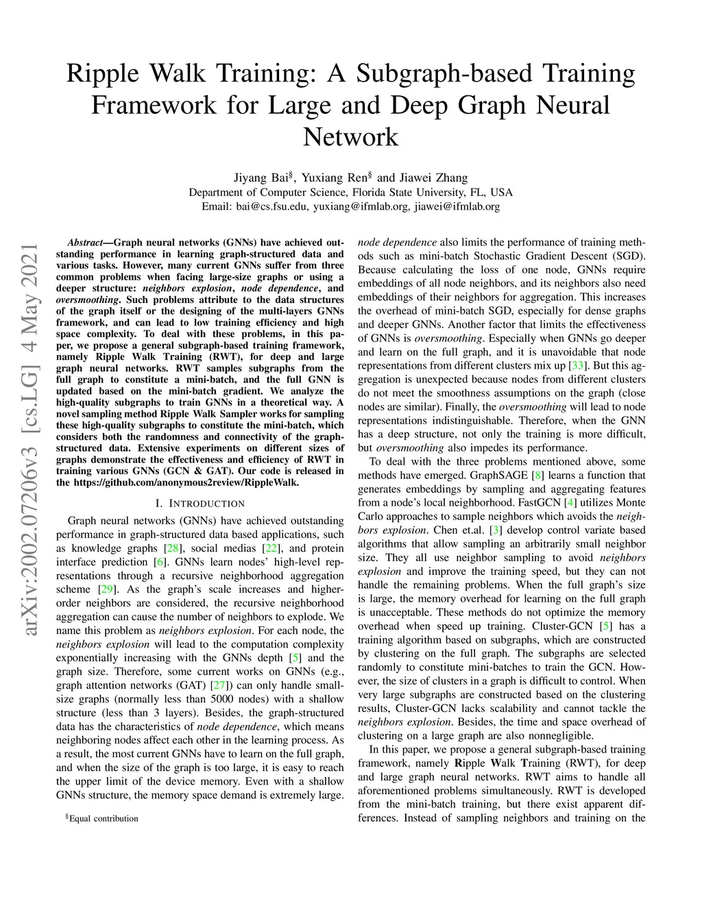 Ripple Walk Training: A Subgraph-based training framework for Large and