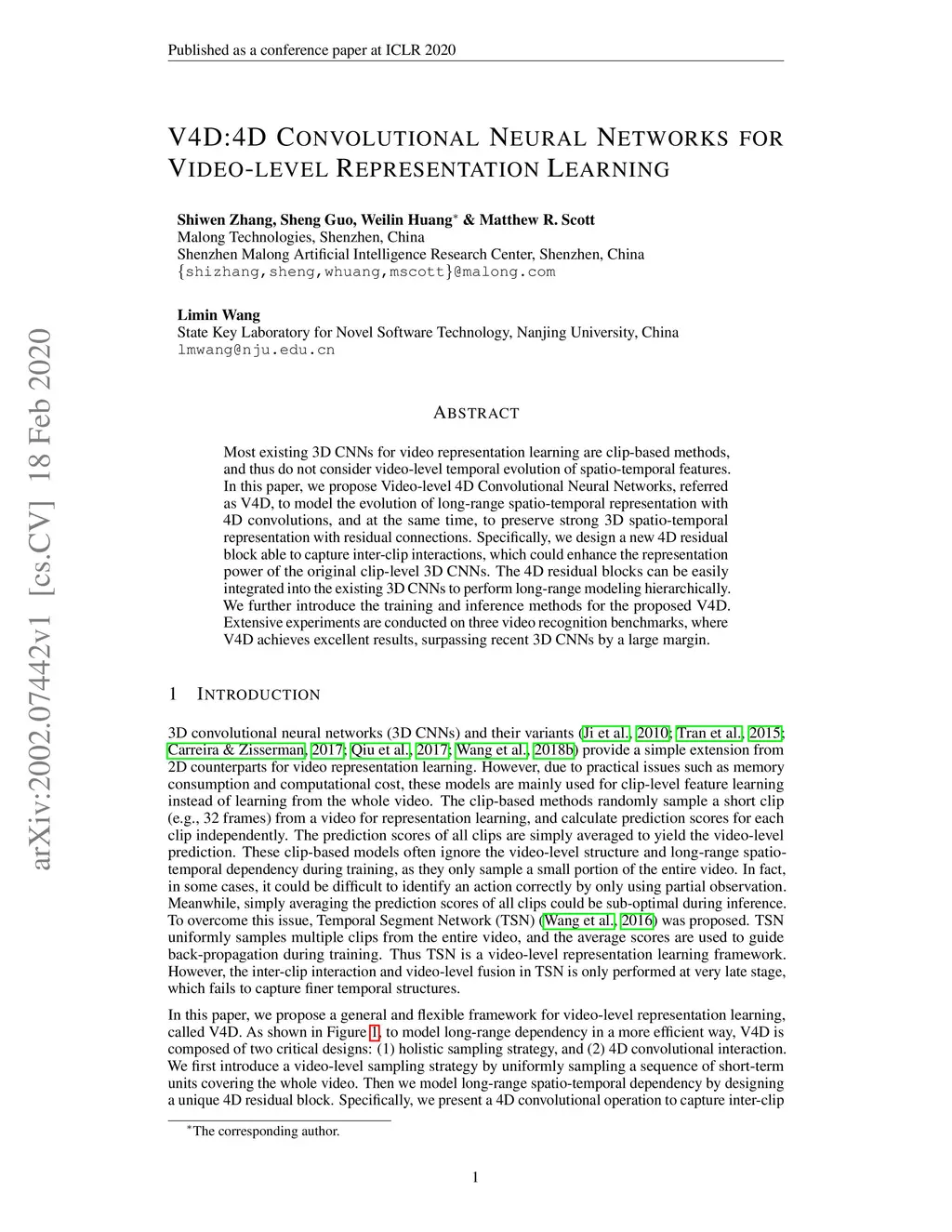 V4D:4D Convolutional Neural Networks for Video-level Representation