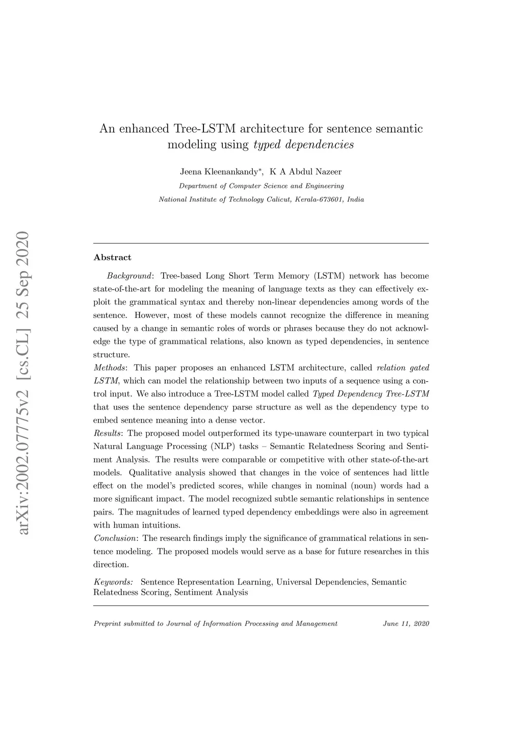 An enhanced Tree-LSTM architecture for sentence semantic modeling using