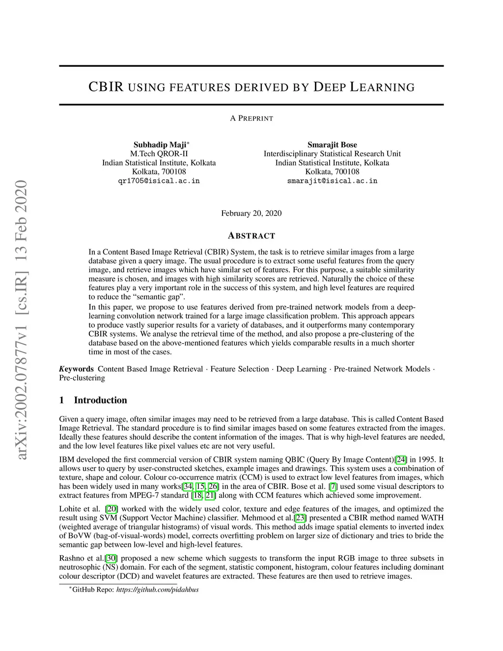 CBIR using features derived by Deep Learning