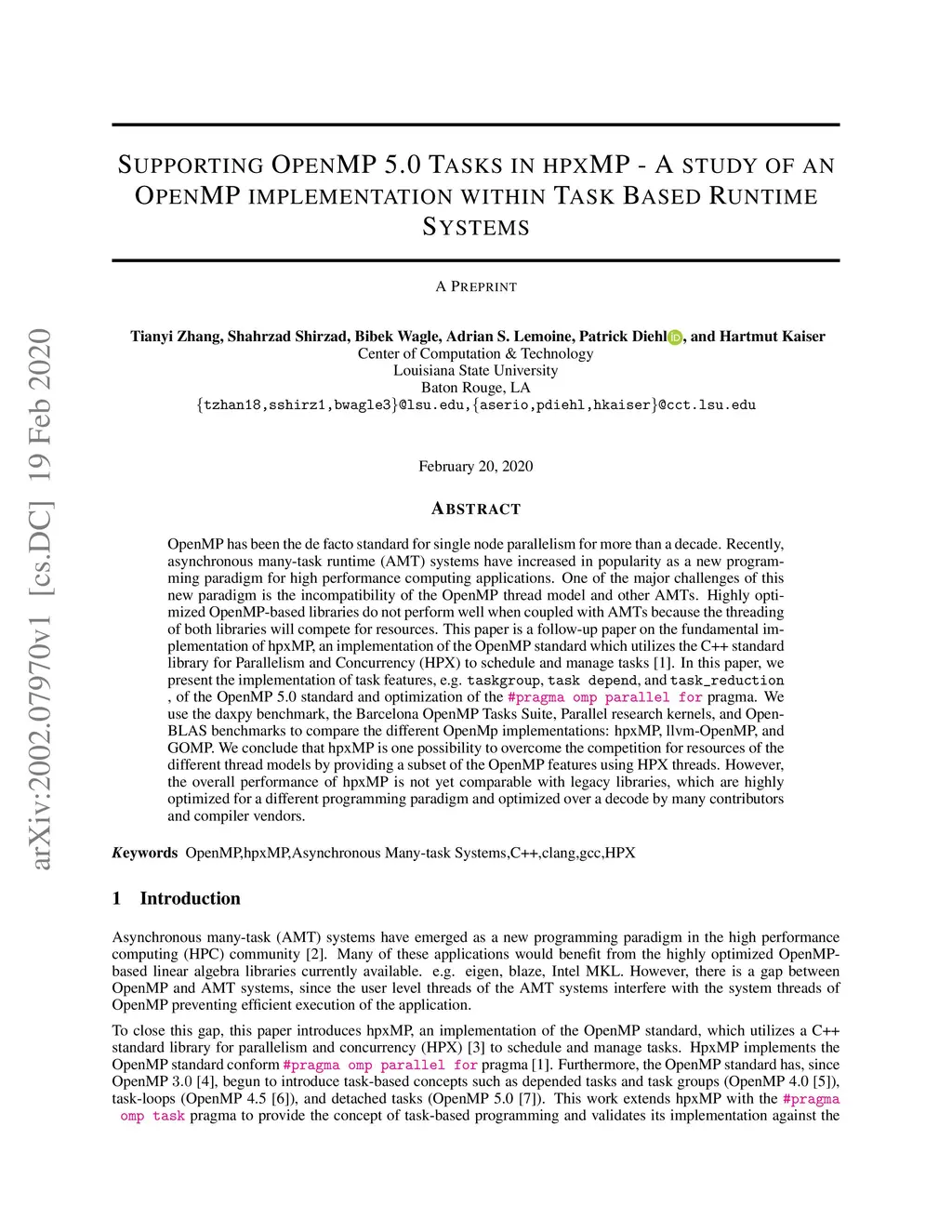 OpenMP has been the de facto standard for single node parallelism for more than a decade. Recently, asynchronous many-task runtime (AMT) systems have increased in popularity as a new programming paradigm for high performance computing applications. One of the major challenges of this new paradigm is the incompatibility of the OpenMP thread model and other AMTs. Highly optimized OpenMP-based libraries do not perform well when coupled with AMTs because the threading of both libraries will compete for resources. This paper is a follow-up paper on the fundamental implementation of hpxMP, an implementation of the OpenMP standard which utilizes the C++ standard library for Parallelism and Concurrency (HPX) to schedule and manage tasks. In this paper, we present the implementation of task features, e.g. taskgroup, task depend, and task_reduction, of the OpenMP 5.0 standard and optimization of the #pragma omp parallel for pragma. We use the daxpy benchmark, the Barcelona OpenMP Tasks Suite, Parallel research kernels, and OpenBLAS benchmarks to compare the different OpenMp implementations: hpxMP, llvm-OpenMP, and GOMP.