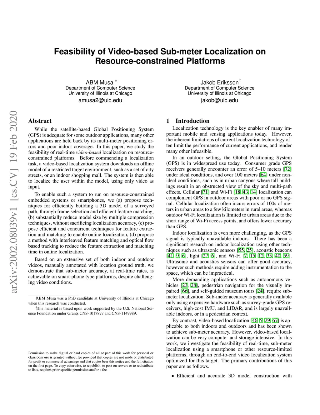 Feasibility of Video-based Sub-meter Localization on
