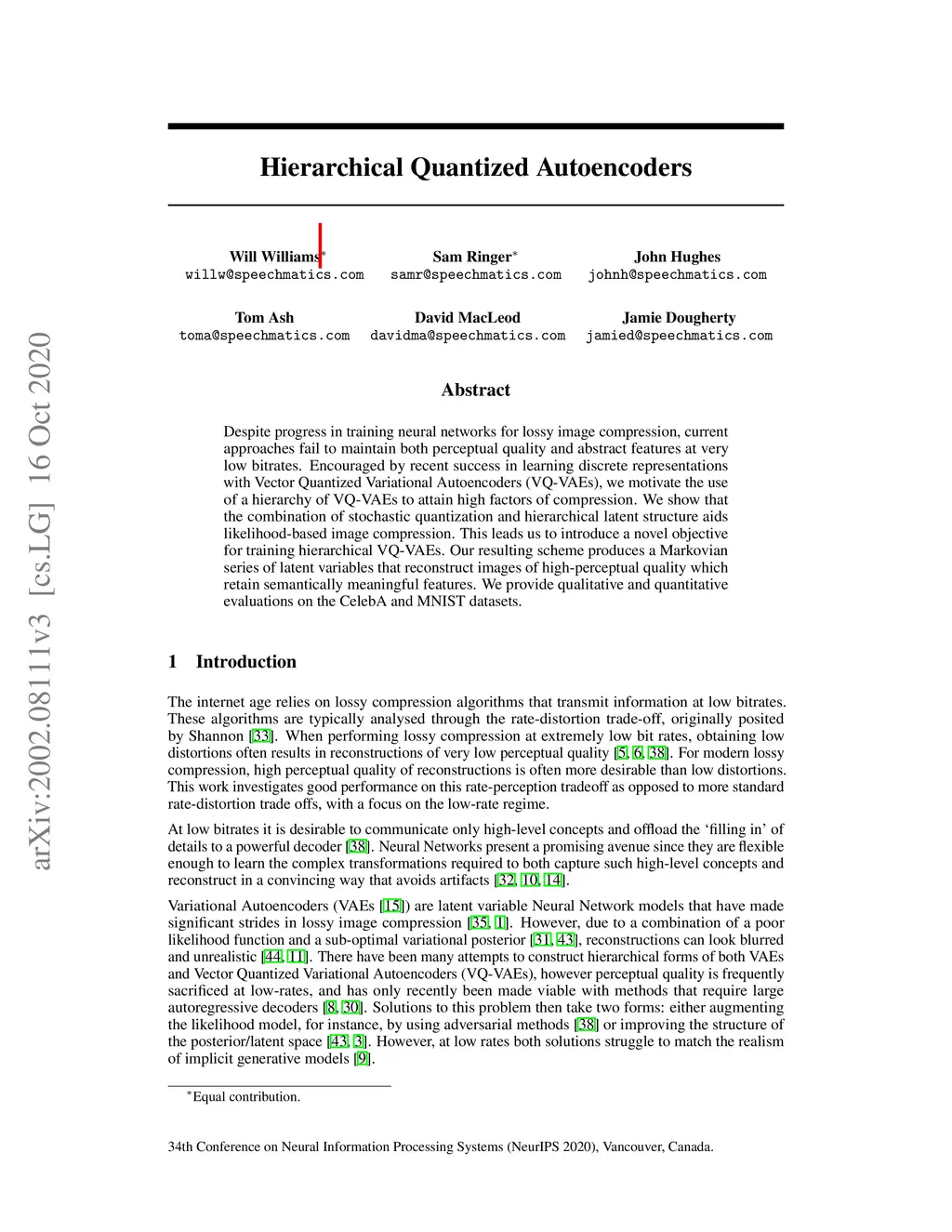 Hierarchical Quantized Autoencoders