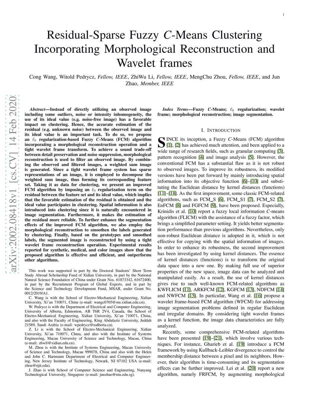 Residual-Sparse Fuzzy -Means Clustering Incorporating Morphological