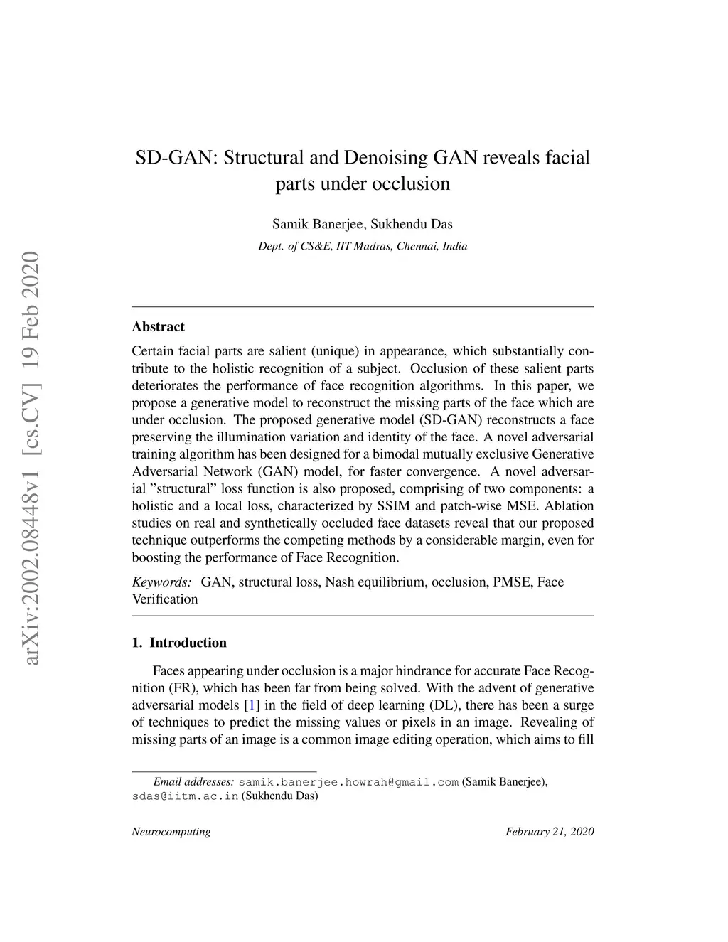 SD-GAN: Structural and Denoising GAN reveals facial parts under