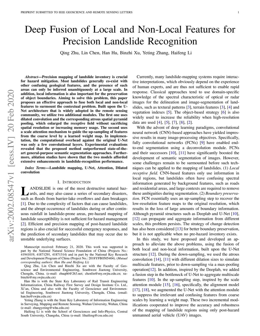 Deep Fusion of Local and Non-Local Features for Precision Landslide