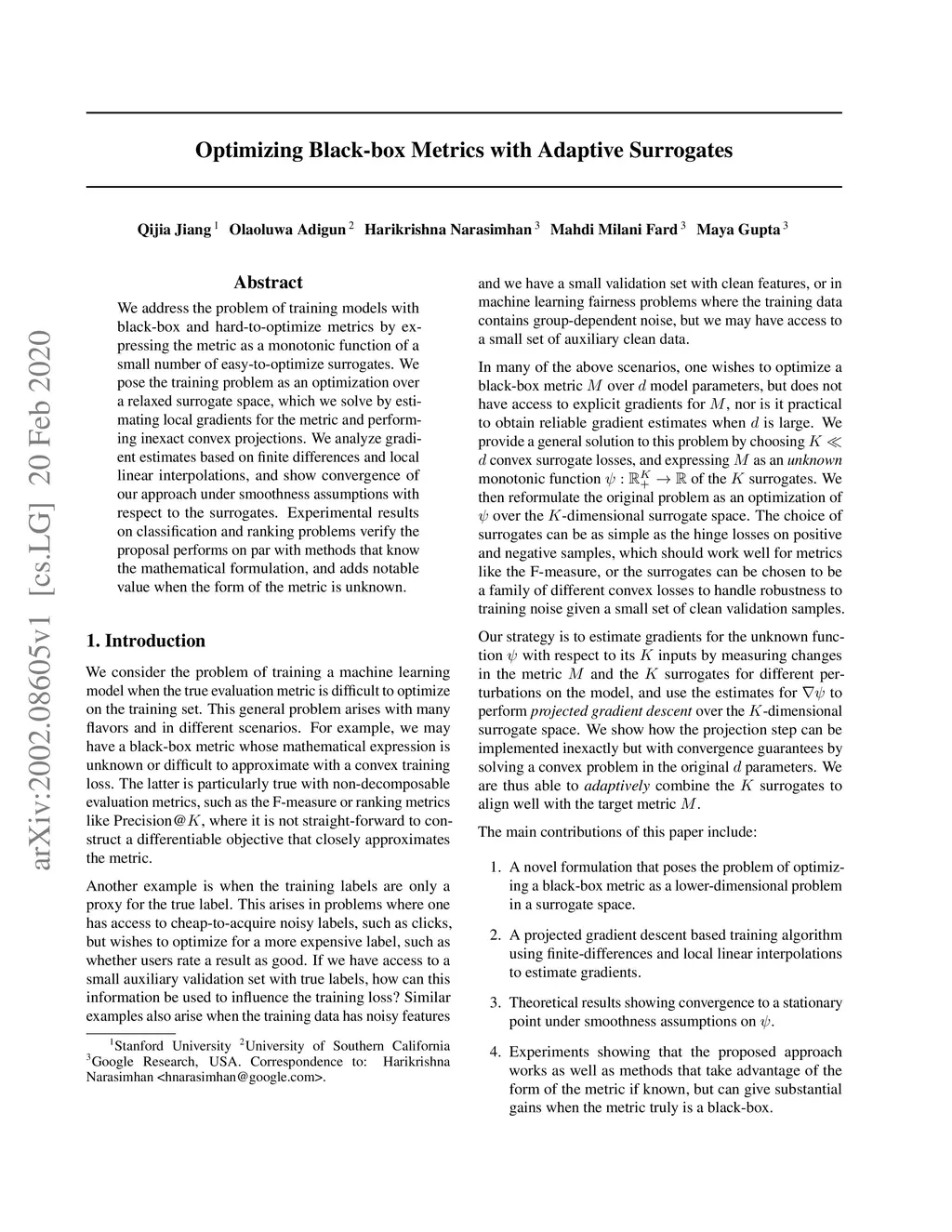 Optimizing Black-box Metrics with Adaptive Surrogates