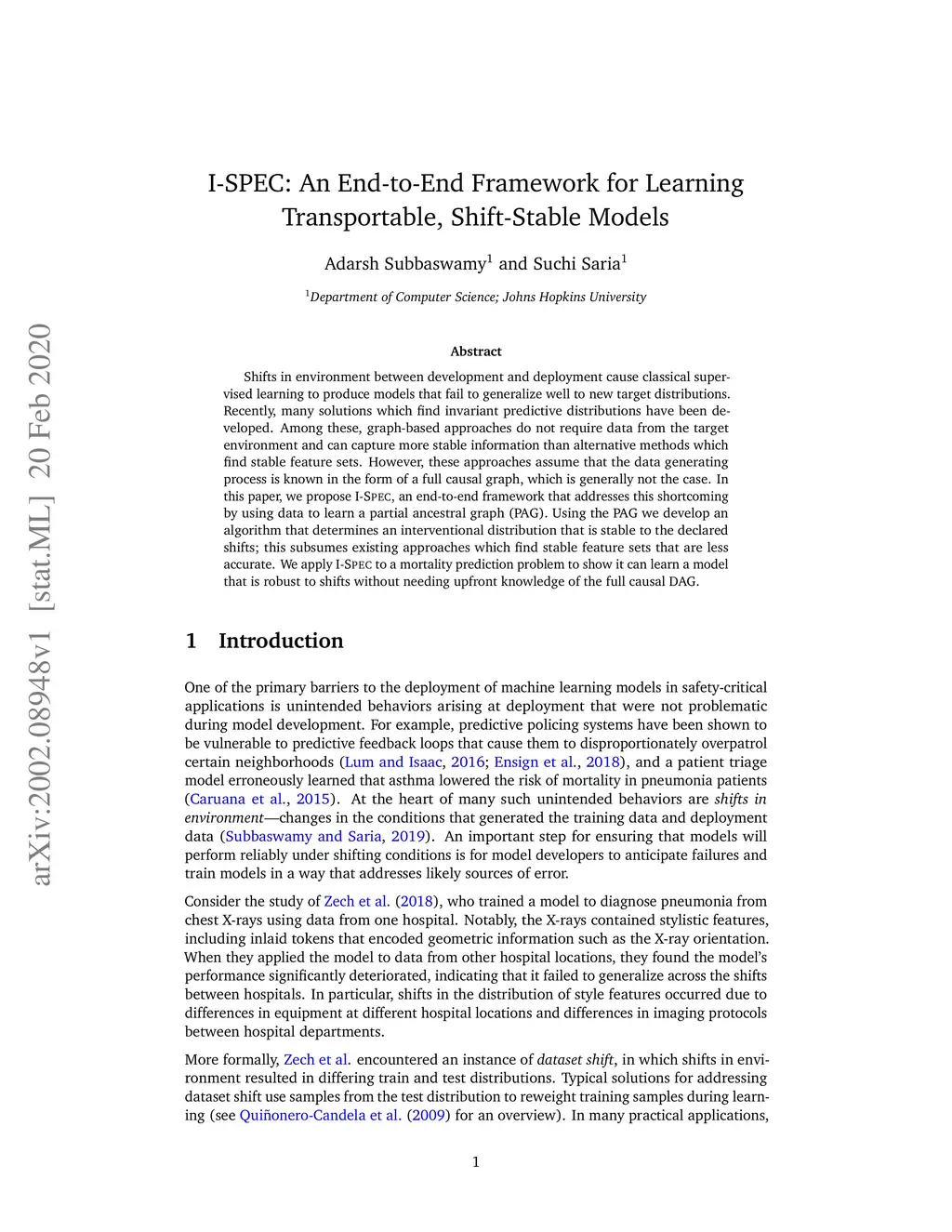 I-SPEC: An End-to-End Framework for Learning Transportable, Shift-Stable