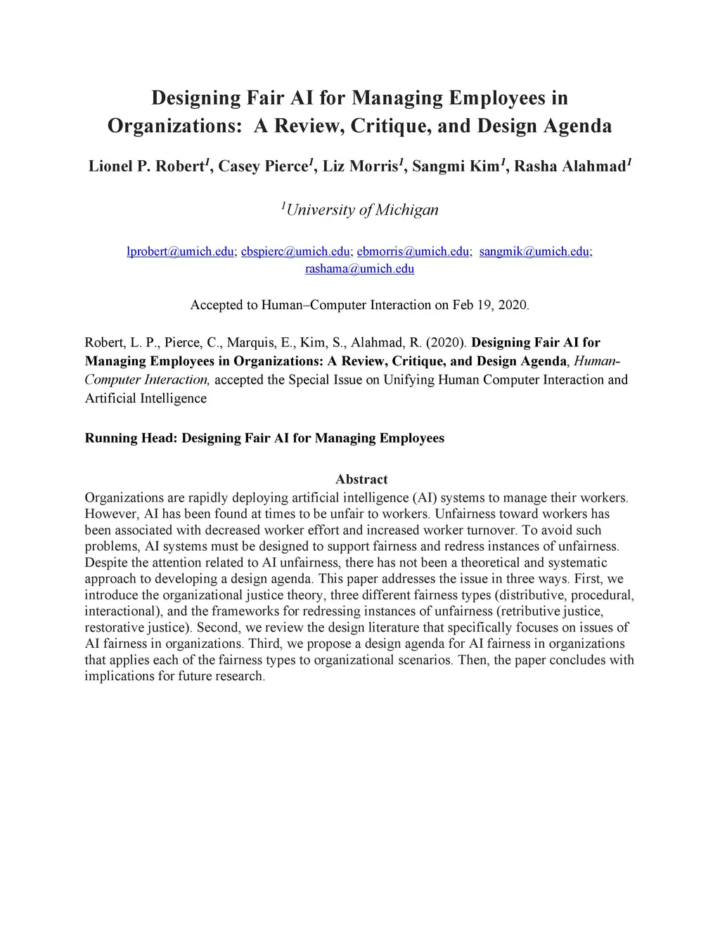 Designing Fair AI for Managing Employees in Organizations: A Review,