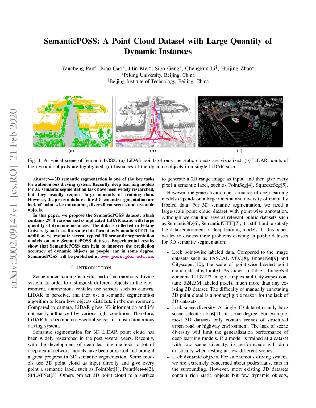 SemanticPOSS: A Point Cloud Dataset with Large Quantity of Dynamic