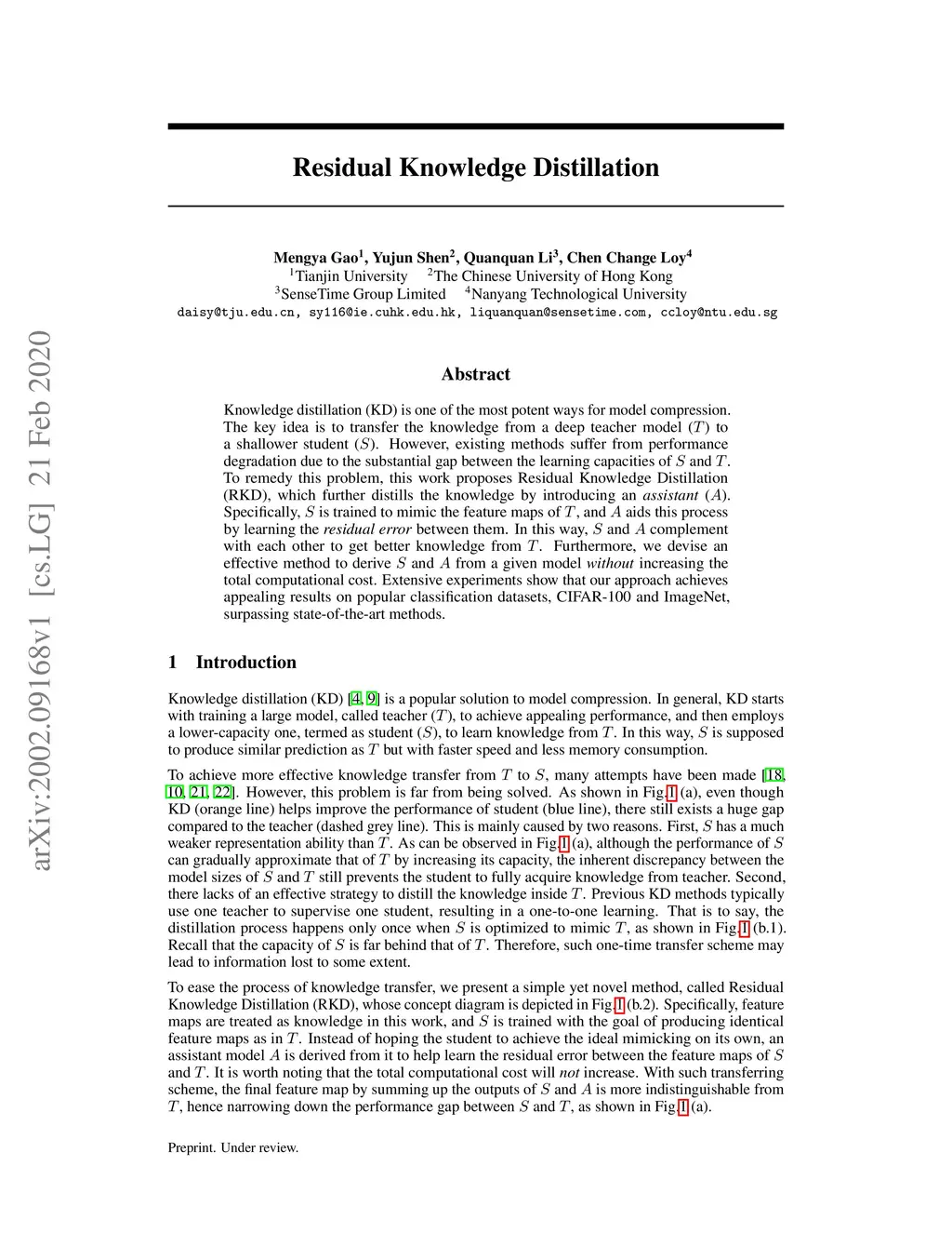 Residual Knowledge Distillation