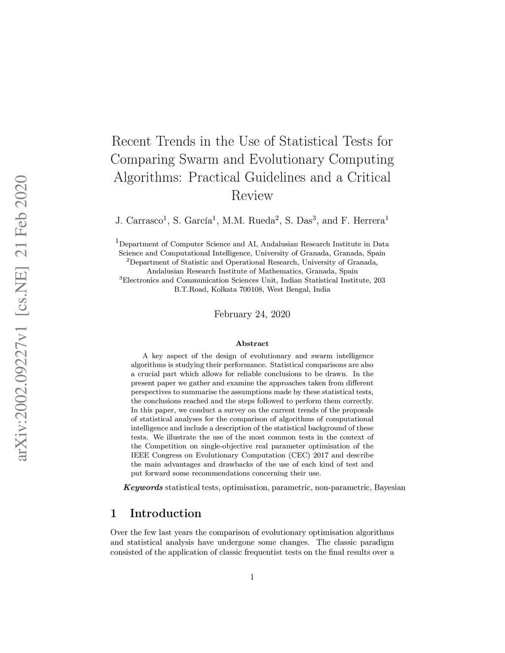 Recent Trends in the Use of Statistical Tests for Comparing Swarm and