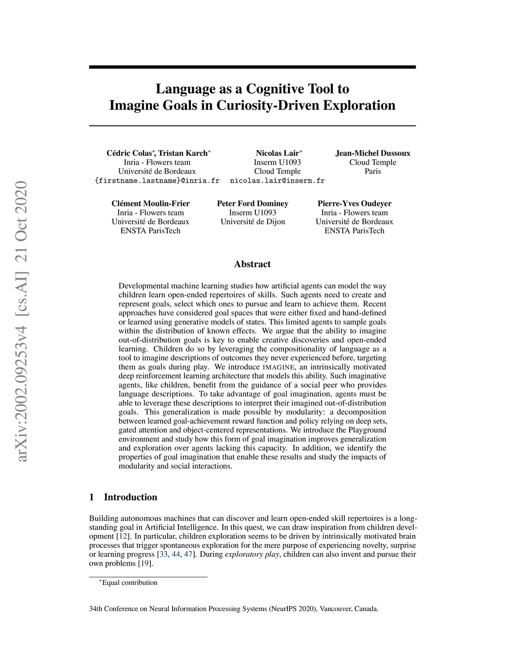 Language as a Cognitive Tool to Imagine Goals in Curiosity-Driven