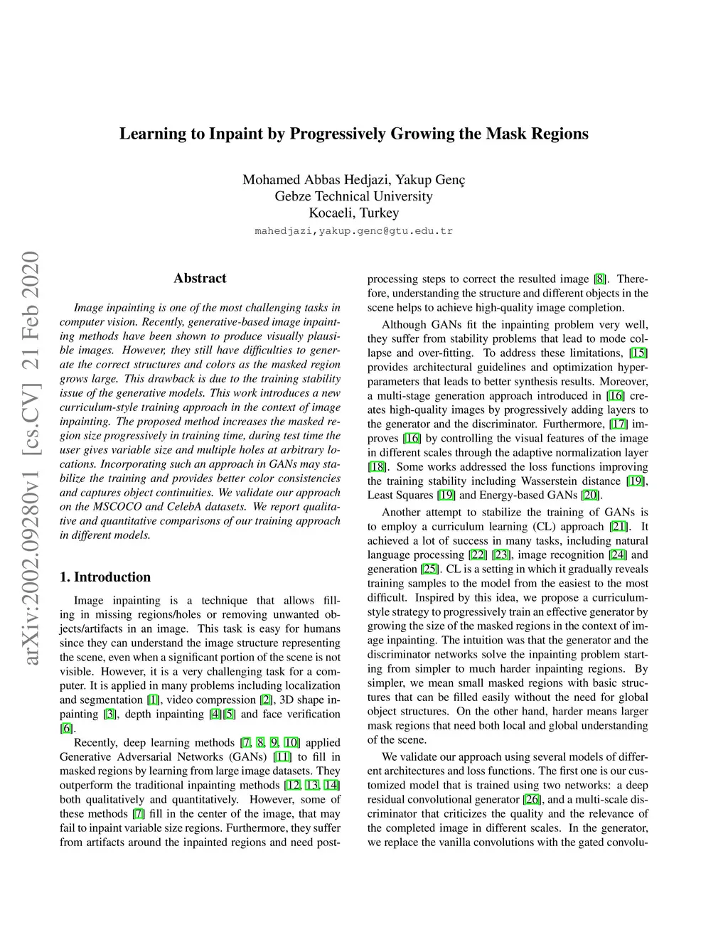 Learning to Inpaint by Progressively Growing the Mask Regions
