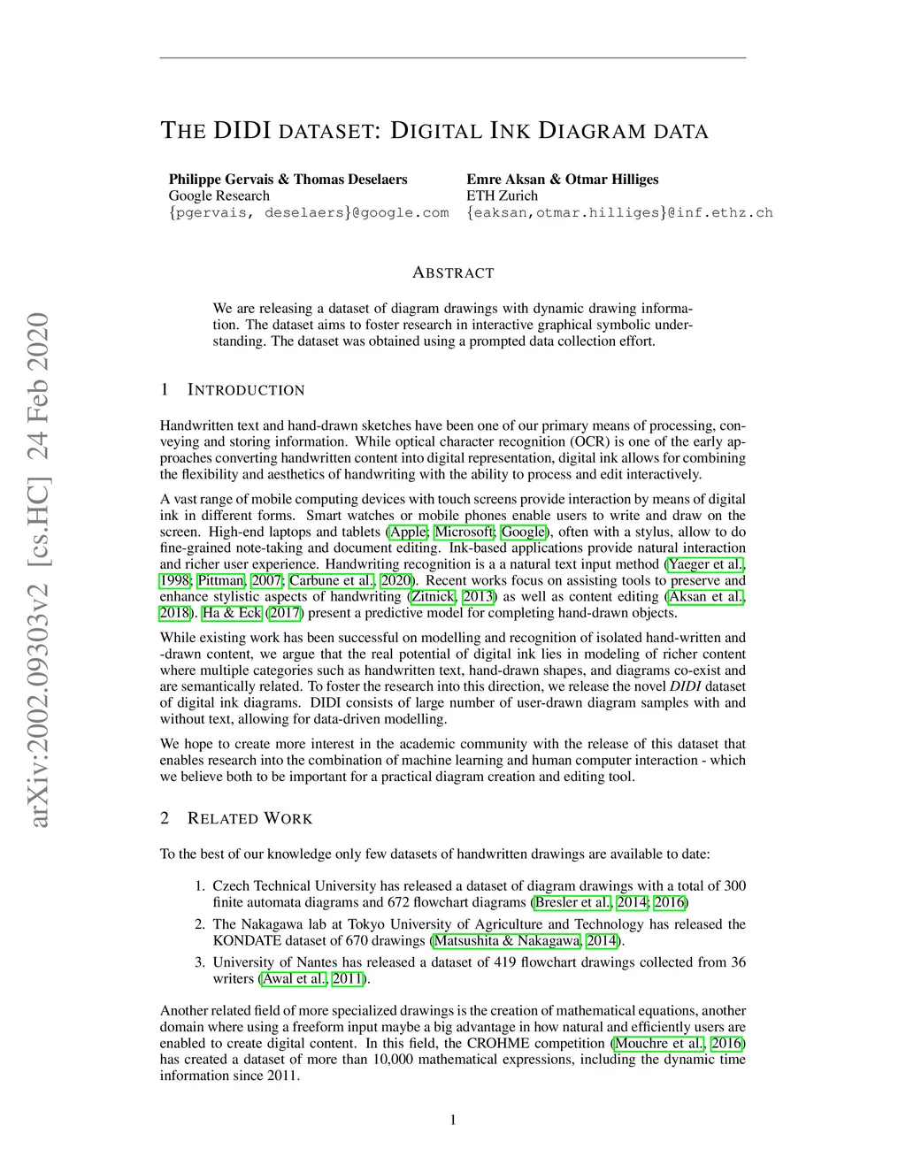 The DIDI dataset: Digital Ink Diagram data