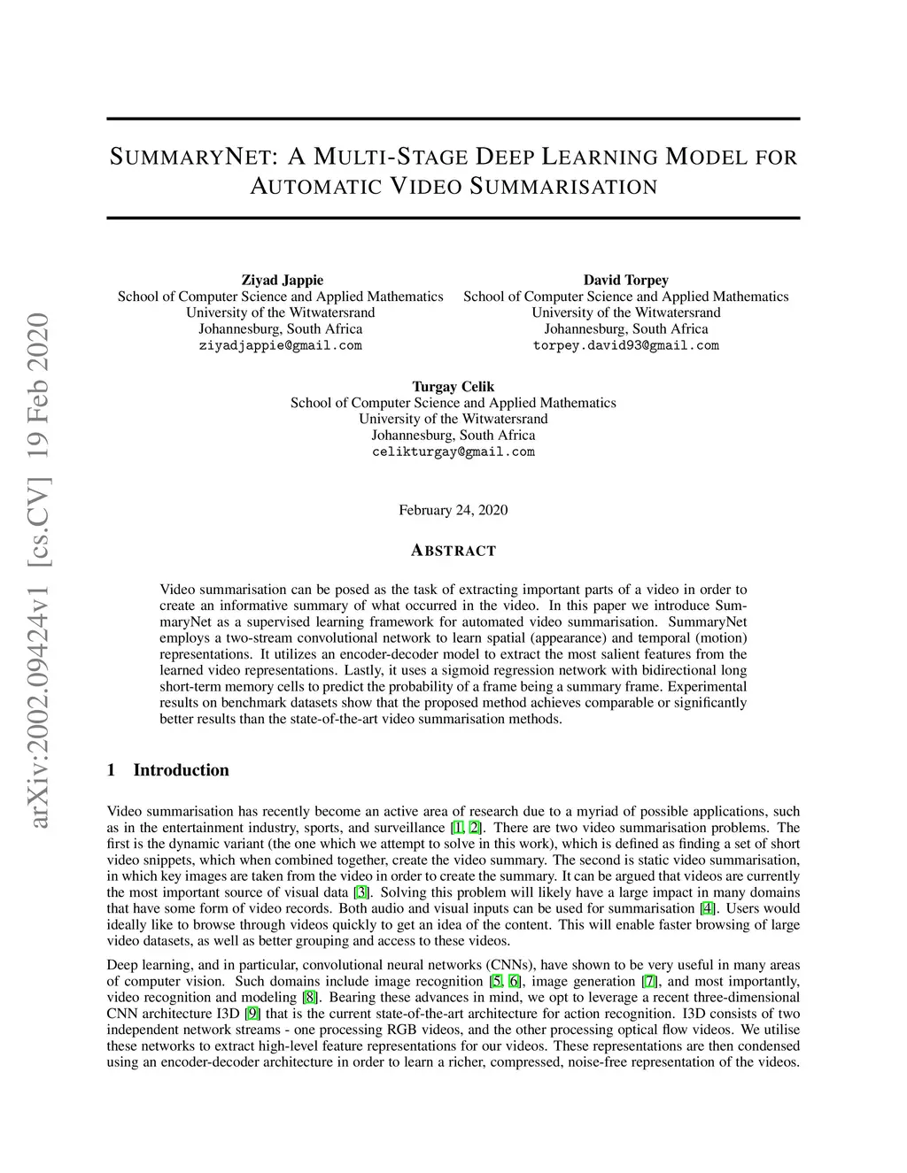 SummaryNet: A Multi-Stage Deep Learning Model for Automatic Video