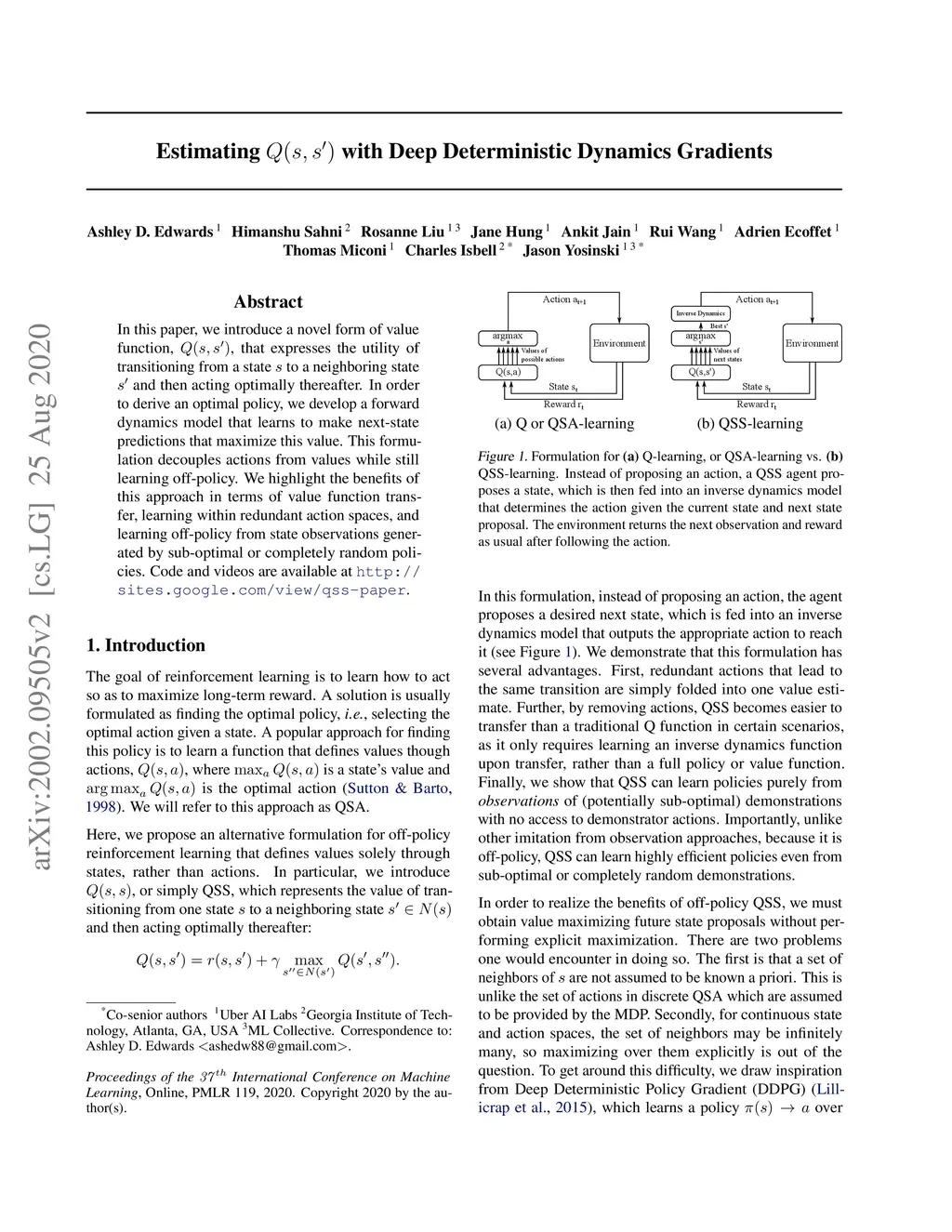 Estimating Q(s,s') with Deep Deterministic Dynamics Gradients