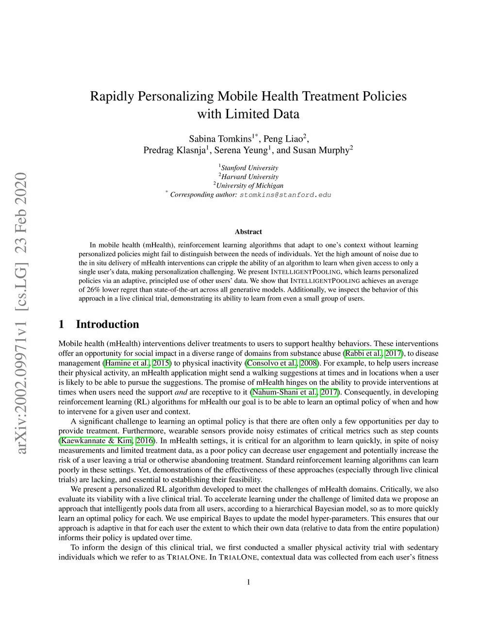 Rapidly Personalizing Mobile Health Treatment Policies with Limited Data