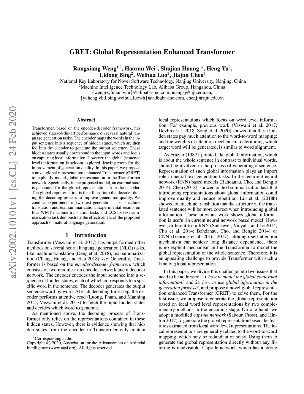 GRET: Global Representation Enhanced Transformer