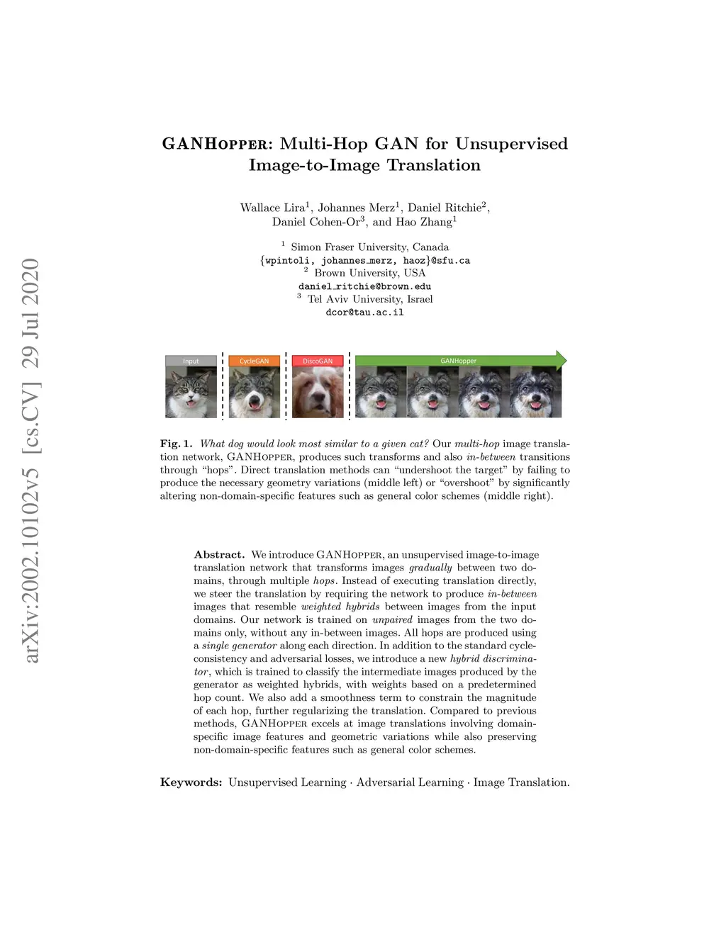 GANHopper: Multi-Hop GAN for Unsupervised Image-to-Image Translation