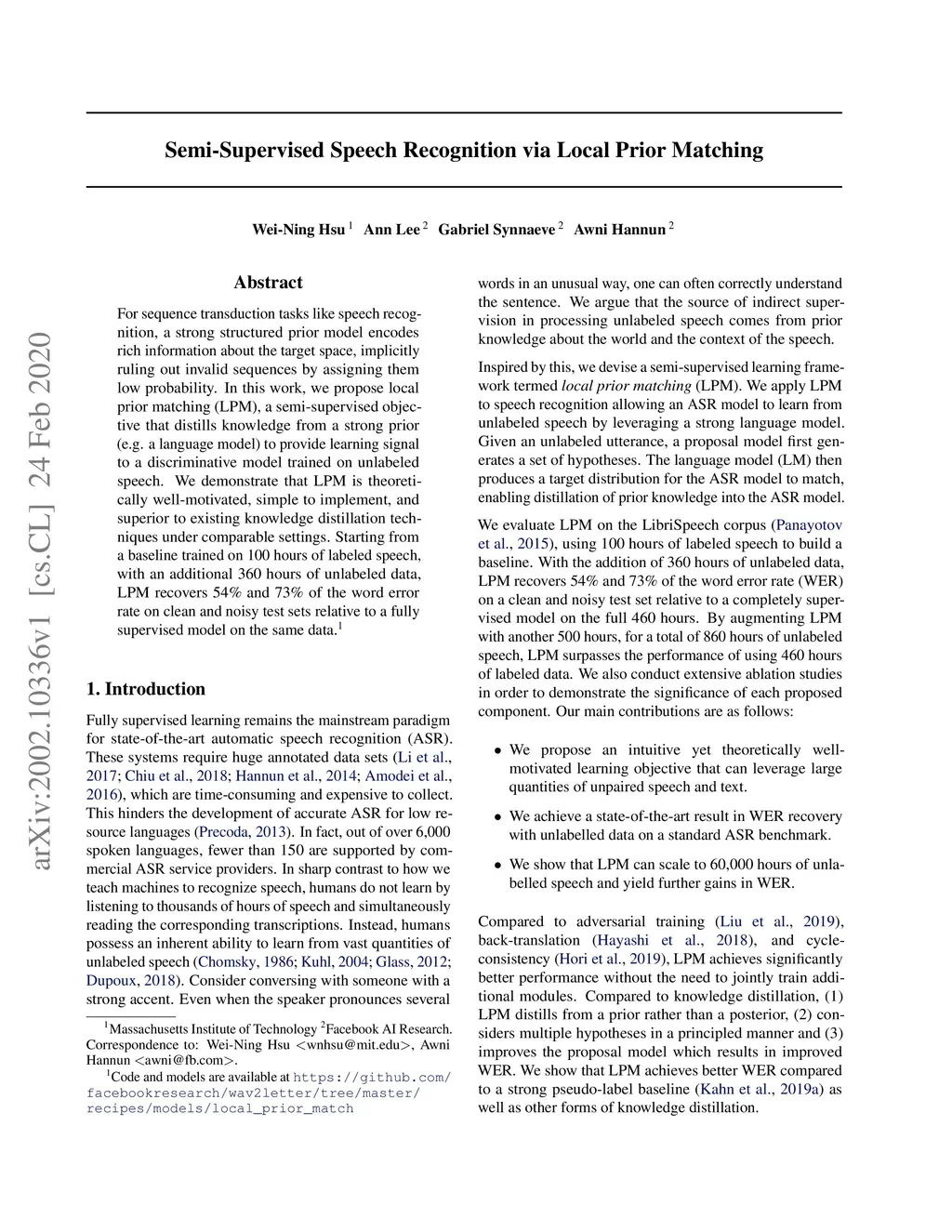 Semi-Supervised Speech Recognition via Local Prior Matching