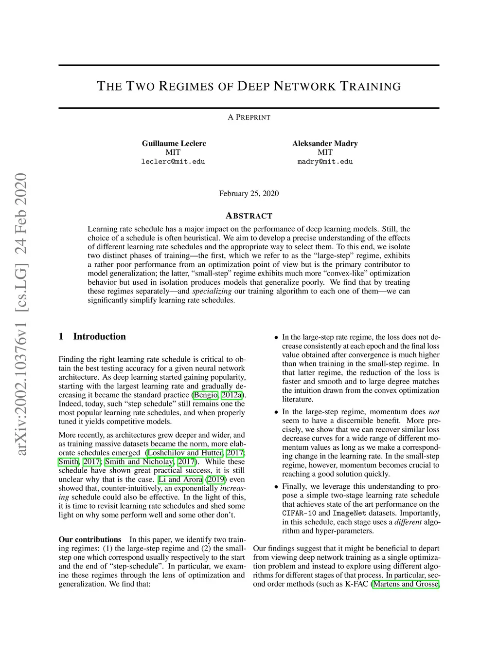 Learning rate schedule has a major impact on the performance of deep learning models. Still, the choice of a schedule is often heuristical. We aim to develop a precise understanding of the effects of different learning rate schedules and the appropriate way to select them. To this end, we isolate two distinct phases of training, the first, which we refer to as the "large-step" regime, exhibits a rather poor performance from an optimization point of view but is the primary contributor to model generalization; the latter, "small-step" regime exhibits much more "convex-like" optimization behavior but used in isolation produces models that generalize poorly. We find that by treating these regimes separately-and em specializing our training algorithm to each one of them, we can significantly simplify learning rate schedules.