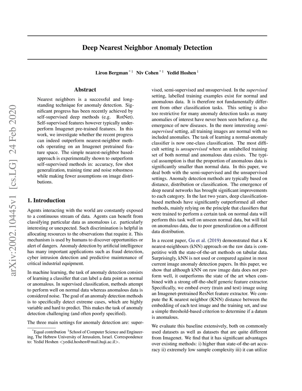 Nearest neighbors is a successful and long-standing technique for anomaly detection. Significant progress has been recently achieved by self-supervised deep methods (e.g. RotNet). Self-supervised features however typically under-perform Imagenet pre-trained features. In this work, we investigate whether the recent progress can indeed outperform nearest-neighbor methods operating on an Imagenet pretrained feature space. The simple nearest-neighbor based-approach is experimentally shown to outperform self-supervised methods in: accuracy, few shot generalization, training time and noise robustness while making fewer assumptions on image distributions.