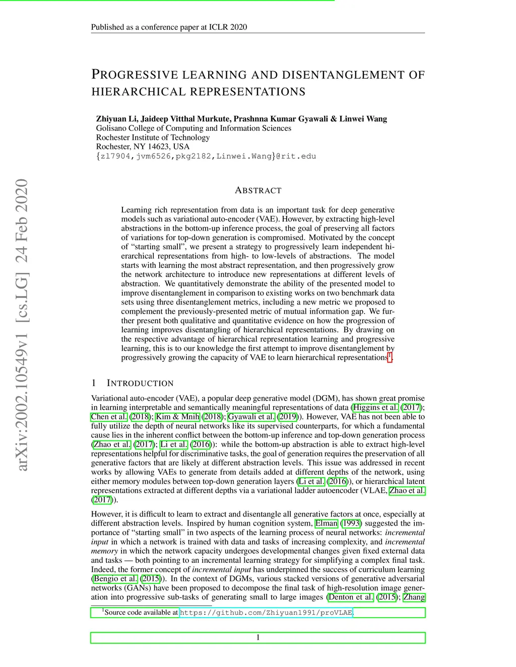 Progressive Learning and Disentanglement of Hierarchical Representations