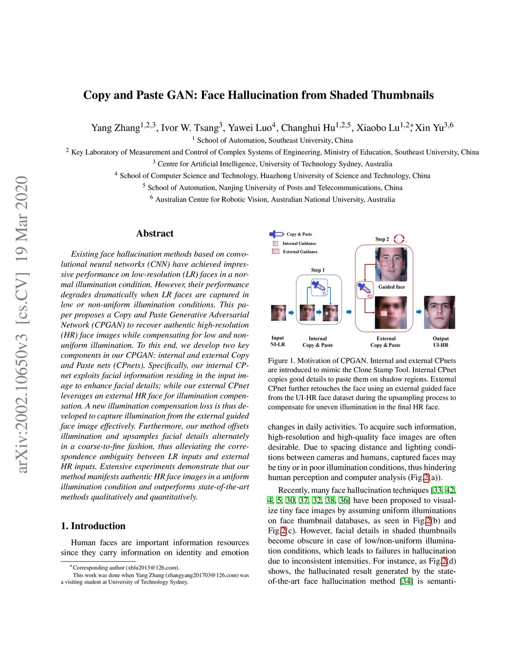 Copy and Paste GAN: Face Hallucination from Shaded Thumbnails