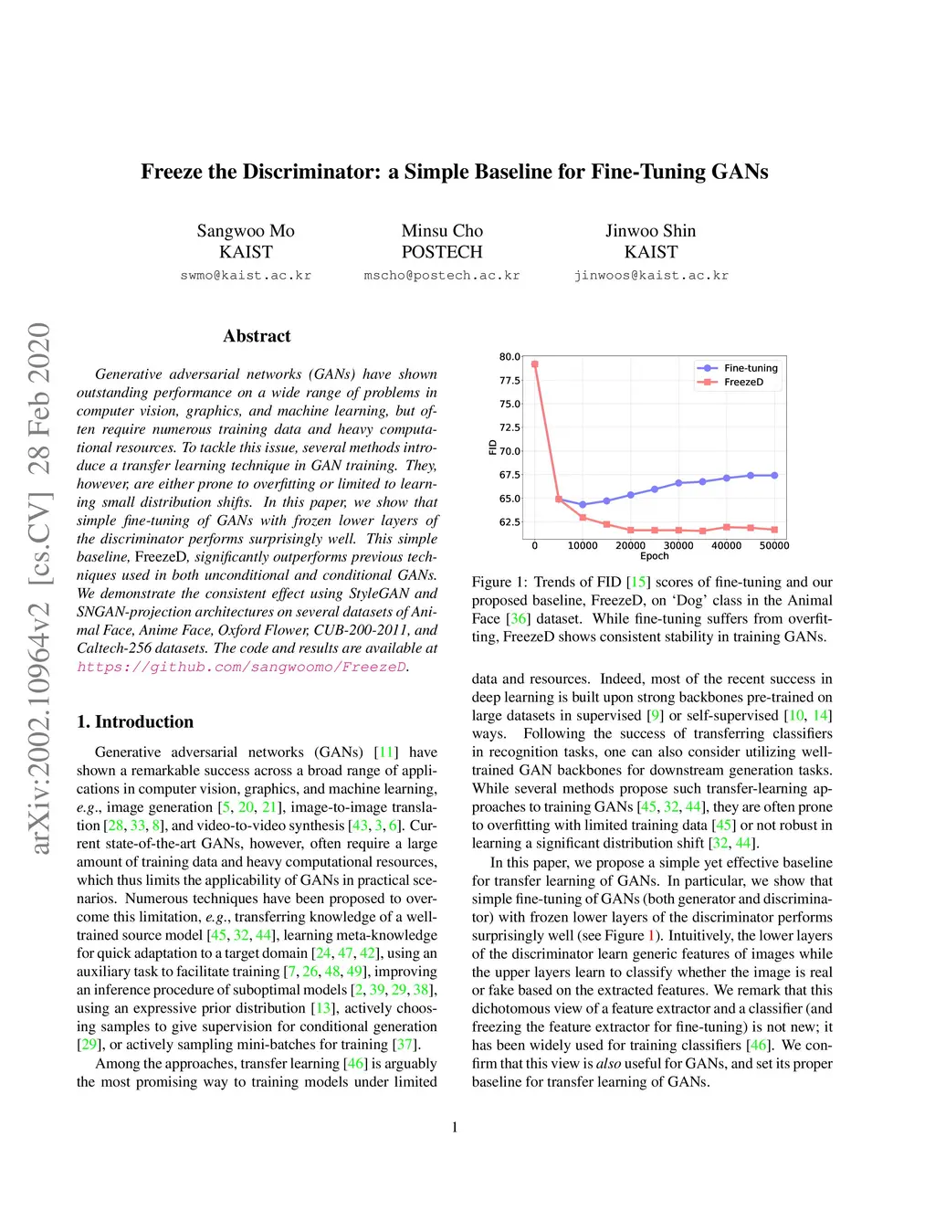 Freeze the Discriminator: a Simple Baseline for Fine-Tuning GANs