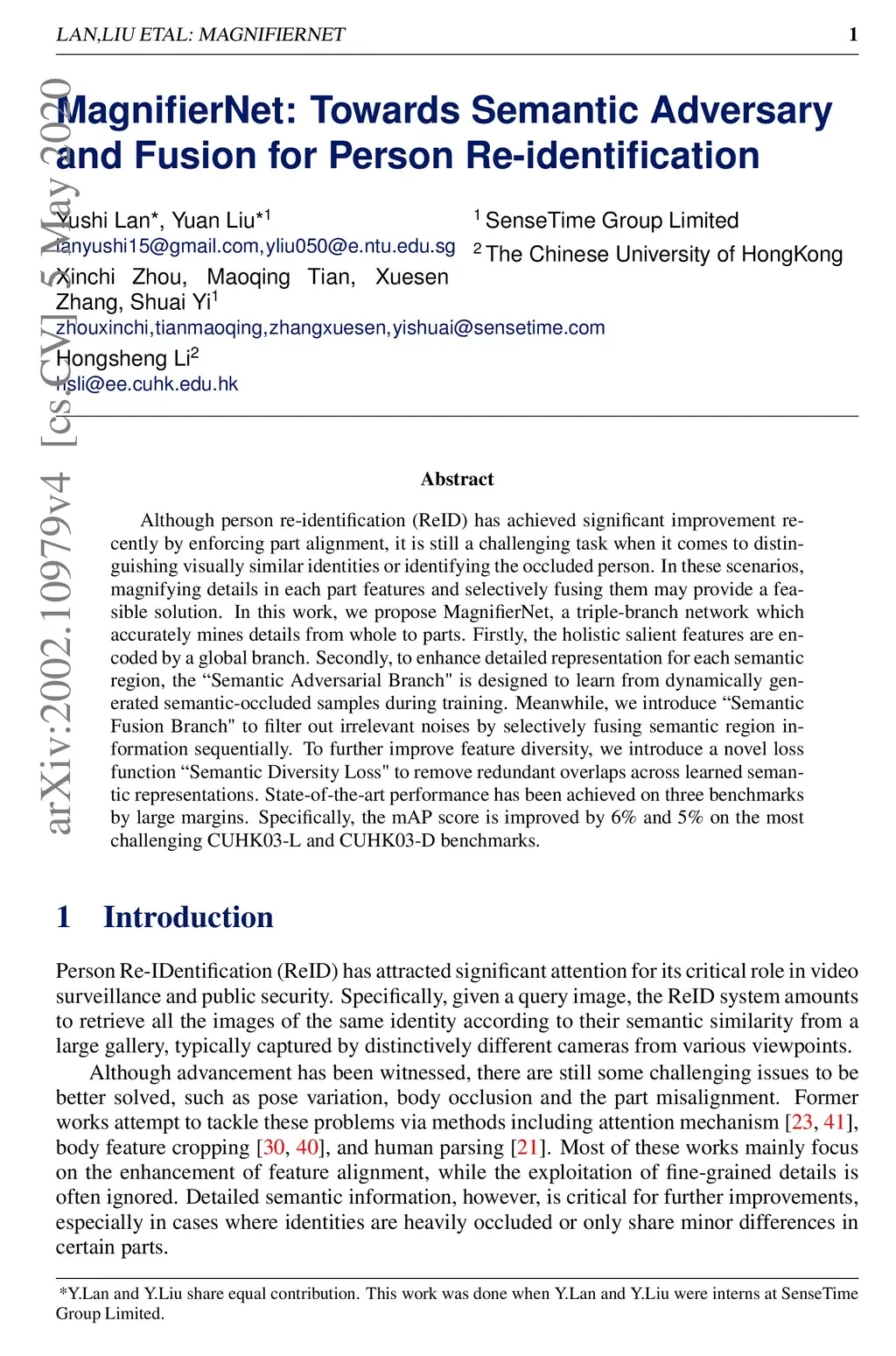 MagnifierNet: Towards Semantic Adversary and Fusion for Person
