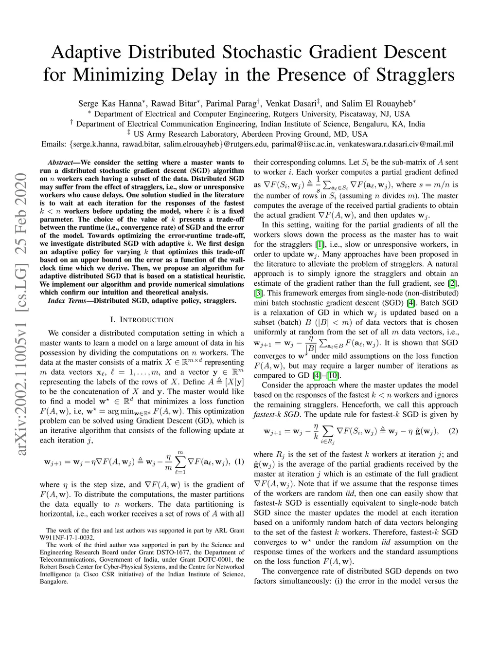 Adaptive Distributed Stochastic Gradient Descent for Minimizing Delay in